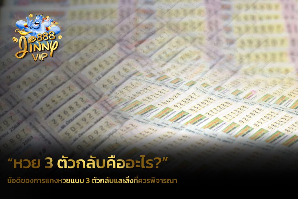 หวย 3 ตัวกลับ คือวิธีการแทงหวยแบบหนึ่งที่หลายคนอาจเคยได้ยินมาก่อน แต่ไม่ทราบความหมายที่แน่ชัด วิธีการเล่นนี้ได้รับความนิยมสูงในกลุ่มคนที่ชอบเสี่ยงโชคกับหวยใต้ดินและหวยรัฐบาล การแทงหวยแบบ 3 ตัวกลับช่วยเพิ่มโอกาสถูกรางวัลได้มากขึ้น บทความนี้จะอธิบายถึงรายละเอียดว่าหวย 3 ตัวกลับคืออะไร เทคนิคการแทงให้ได้ผลและข้อดีของการเลือกแทงแบบ 3 ตัวกลับ